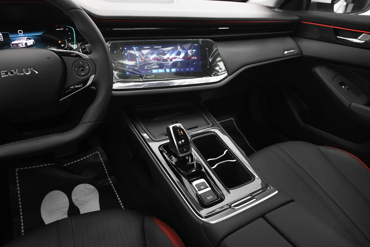 - Черная центральная консоль с декоративными вставками
