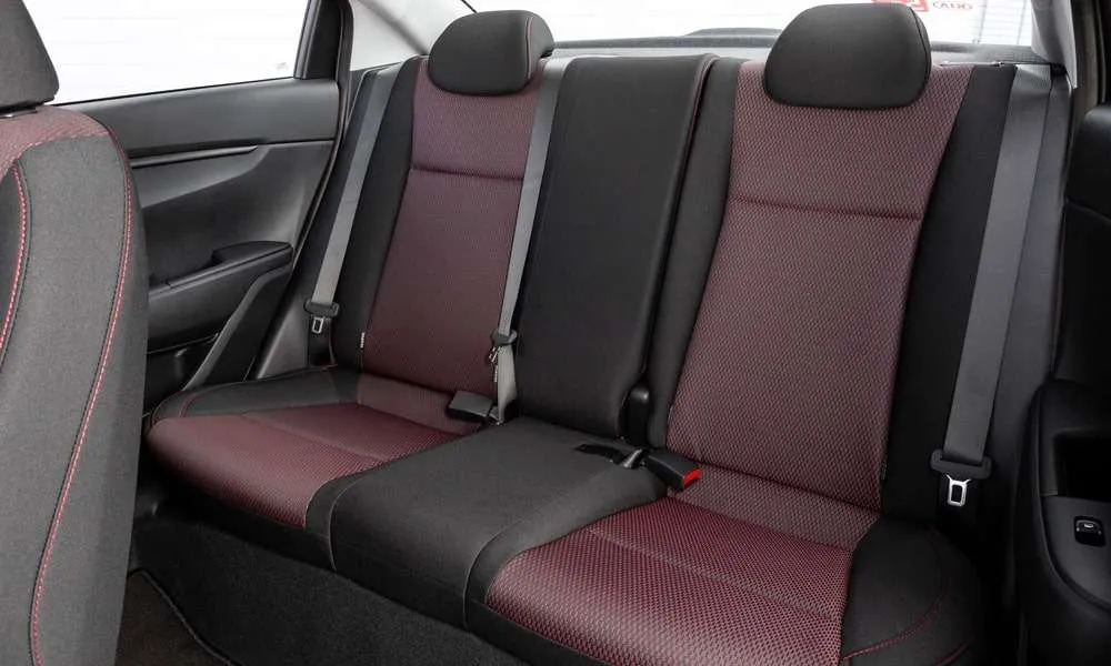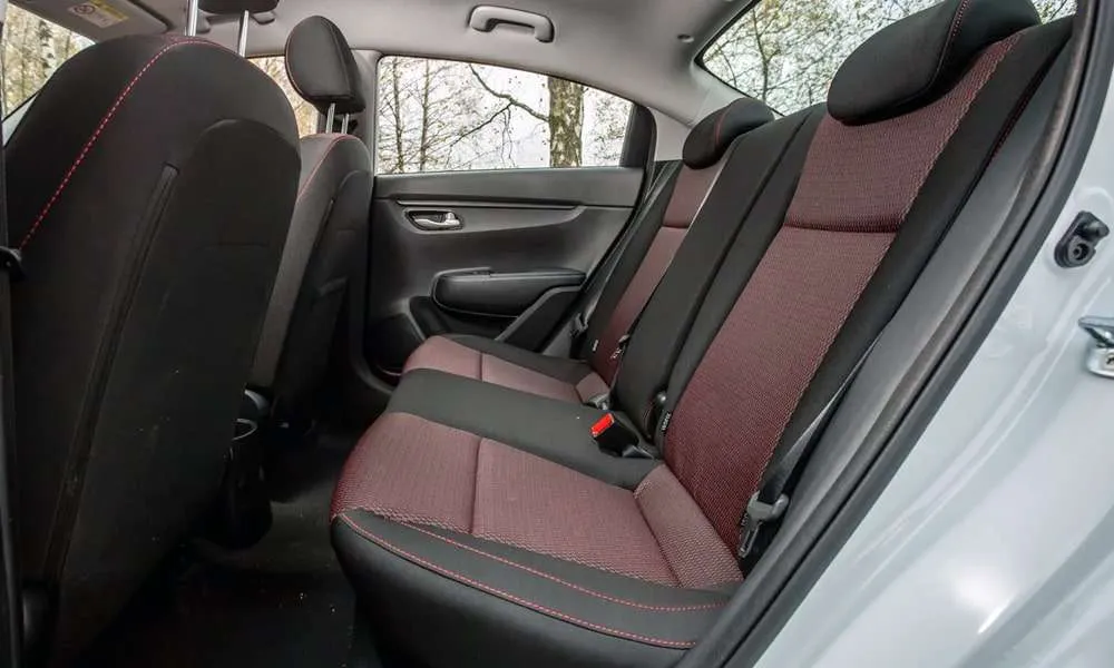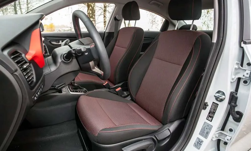 - Сиденья с отделкой тканью Style и красной прострочкой